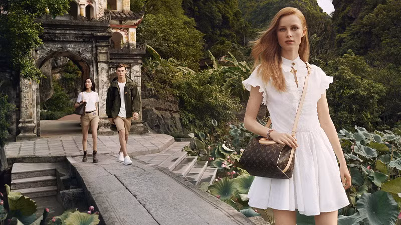 Entitled “Spirit of Travel”, the campaign unfolds as a travelogue where photographer Angelo Pennetta captured the models Rianne van Rompaey, Fei Fei Sun and Kit Butler in Ha Long Bay, Trang An, Hoi An and Sa Pa.