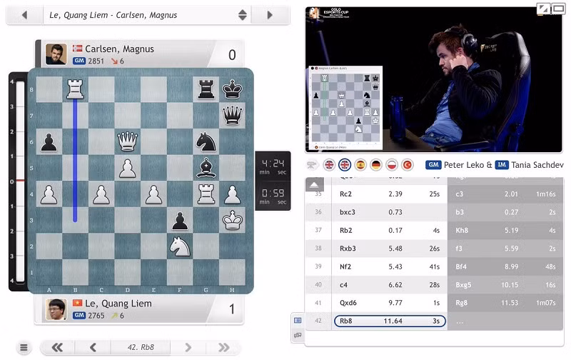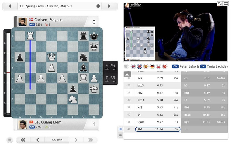 Le Quang Liem defeats chess king Magnus Carlsen for the first time ever after 16 encounters. (Photo: CHESS24)