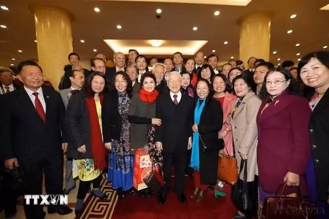 Party General Secretary Nguyen Phu Trong meets intellectuals, writers and artists in Hanoi on the occasion of the Lunar New Year of 2018 on February 7, 2018 (Photo: VNA)