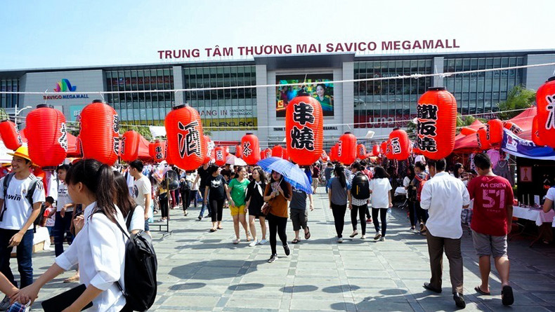 Savico Megamall filled with colorful Japanese lanterns creating an autumn atmosphere.